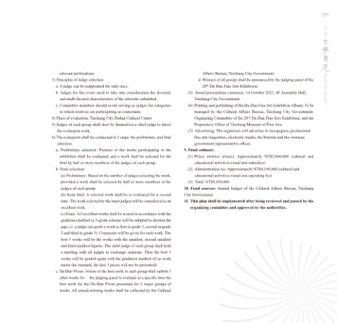 judges of each group. 10. Fund sources: Annual budget of the Cultural Affairs Bureau, Taichung