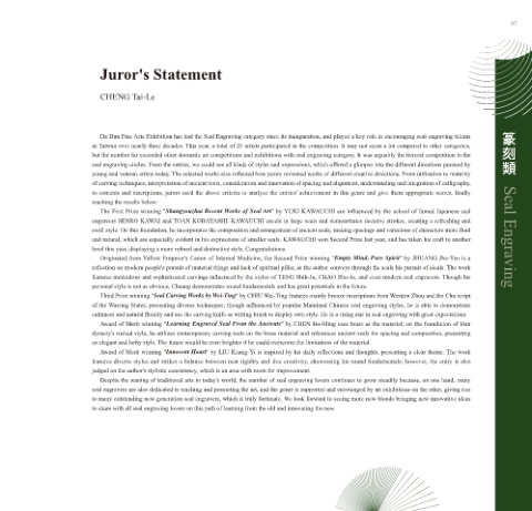 to many outstanding new-generation seal engravers, which is truly fortunate. We look forward to seeing more new bloods bringing new innovative ideas