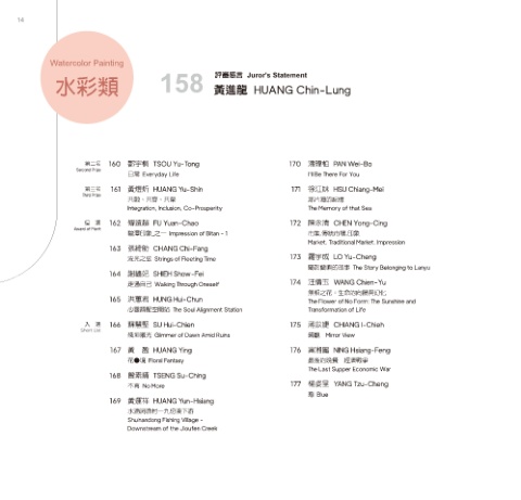 入 選 166 蘇慧堅 SU Hui-Chien 175 蔣苡婕 CHIANG I-Chieh