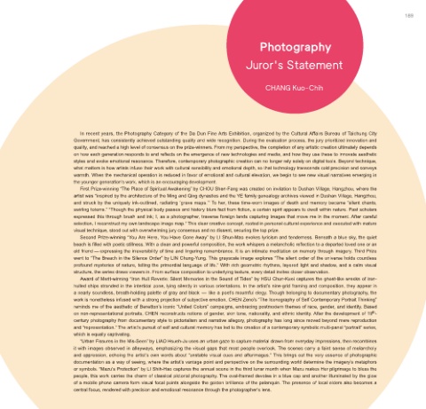In recent years, the Photography Category of the Da Dun Fine Arts Exhibition, organized by the Cultural Affairs Bureau of Taichung City