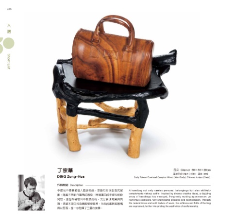 雅。透過木頭的純色調與堅硬質感,包包的柔軟與皺褶 the natural tones and solid texture of wood, the softness and folds of the bag