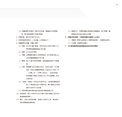 5、各類評審委員各推一人為召集人主持評審工作。 (一)獎勵金(得獎作品獎金及大墩獎典藏獎金):新臺幣569萬元。