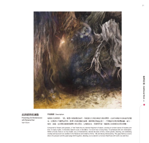 166×150cm 光,在聖經中不僅是自然物,更是生命與救贖之象徵。樹林裡沒有真正死亡;只有臨界永恆的時間結構,著生、