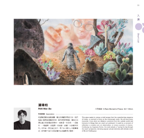作」的作品,想把自己投入一個「以小觀大」的觀看模 the small” perspective, blending popular cultural elements with intimate slices