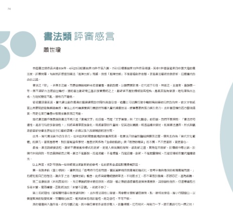 以上所言,或許可做為一些年輕書法家創新時的參考。在此依例必須寫點獲獎者評語。